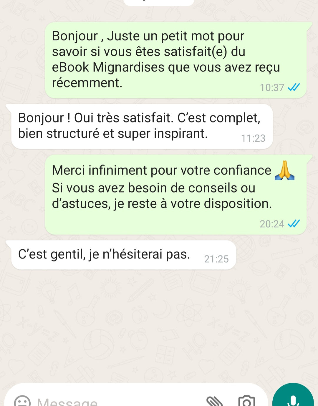 Des bouchées faciles, rapides et pleines de saveurs ✨. Profitez de notre garantie satisfait ou remboursé 30 jours et découvrez 66 mignardises prêtes à régaler famille et amis. Surprenez vos invités et transformez chaque apéritif ou dessert en un moment inoubliable.